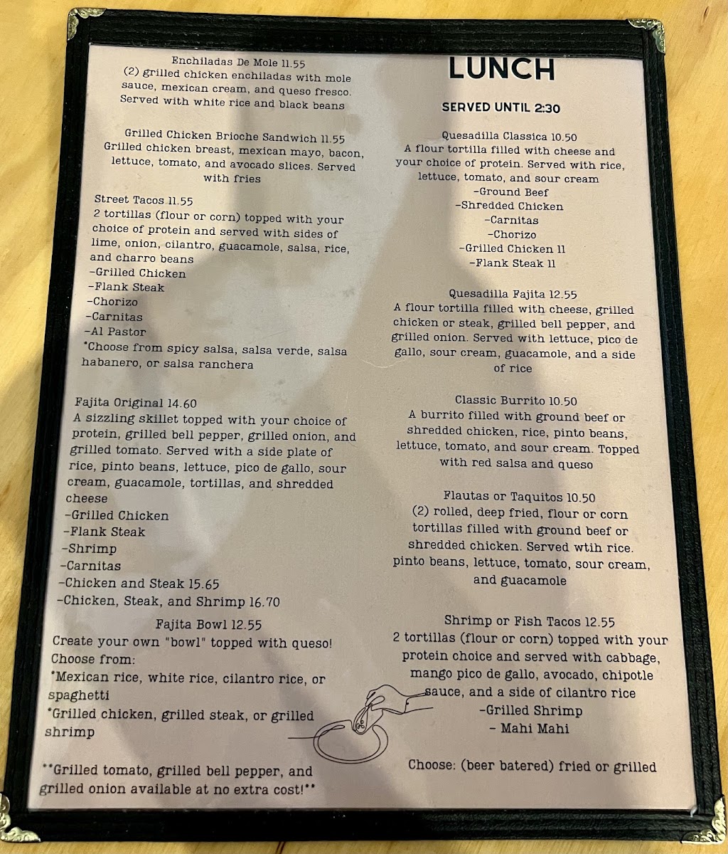 The menu features a variety of dishes that suit different moods and occasions. Mornings might find you enjoying freshly prepared breakfast burritos alongside fresh-squeezed juices. For those midday or afternoon meals, options like shrimp fajitas, grilled chicken fajita bowls, or enchiladas provide hearty, flavorful choices that complement the restaurant’s warm and inviting atmosphere.